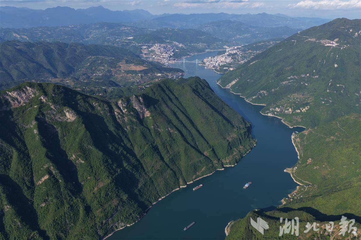 万里长江在这里进入湖北,远处是恩施巴东县城。